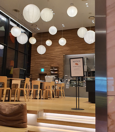 1층에는 조명이 인상깊었던 카페가 있었다. 이용할 기회가 없어 방문은 다음번을 기약을 하였다. ;<