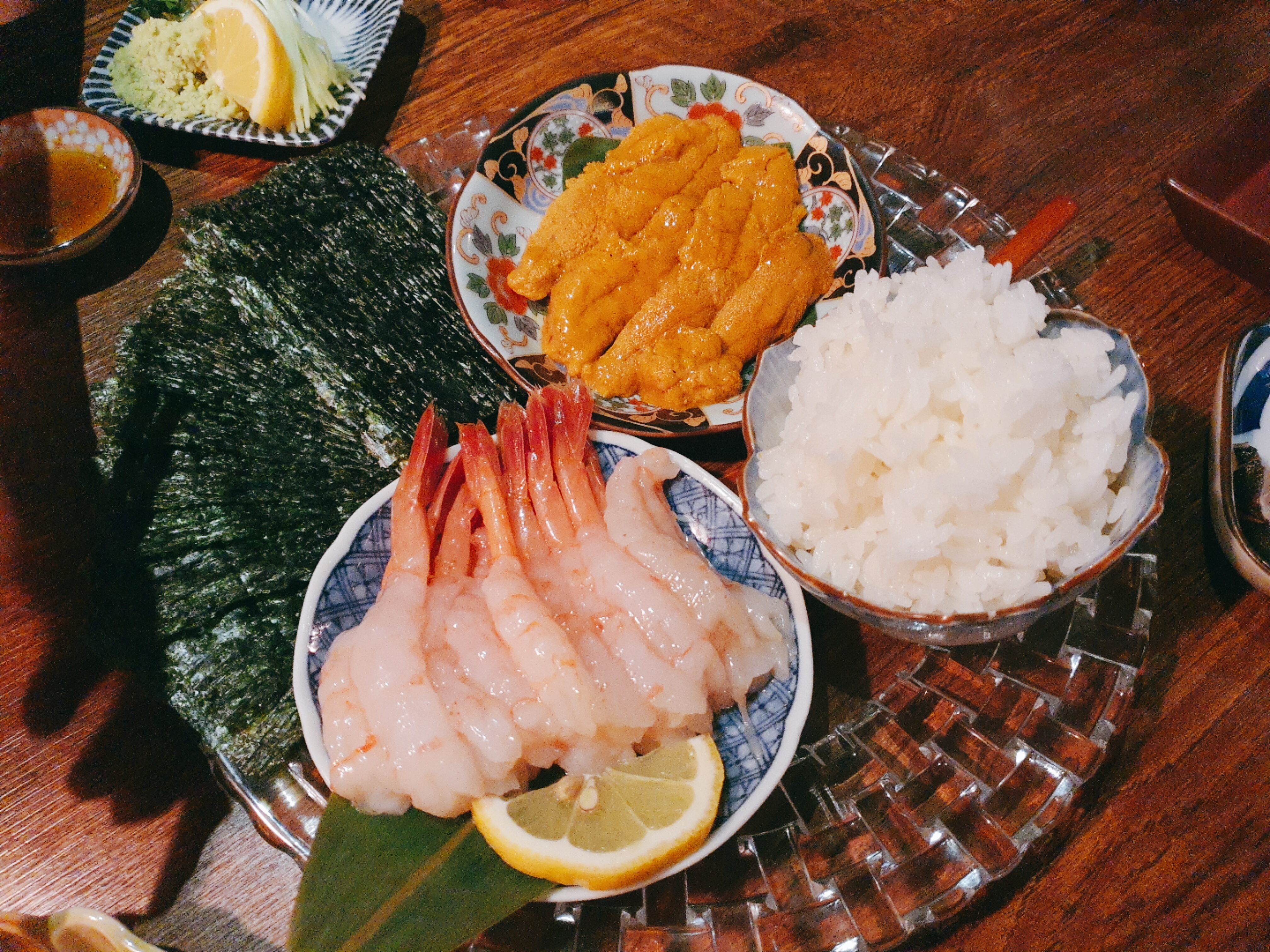 김이랑 밥이랑해서 새우한번 성게알한번 해서 먹었다.