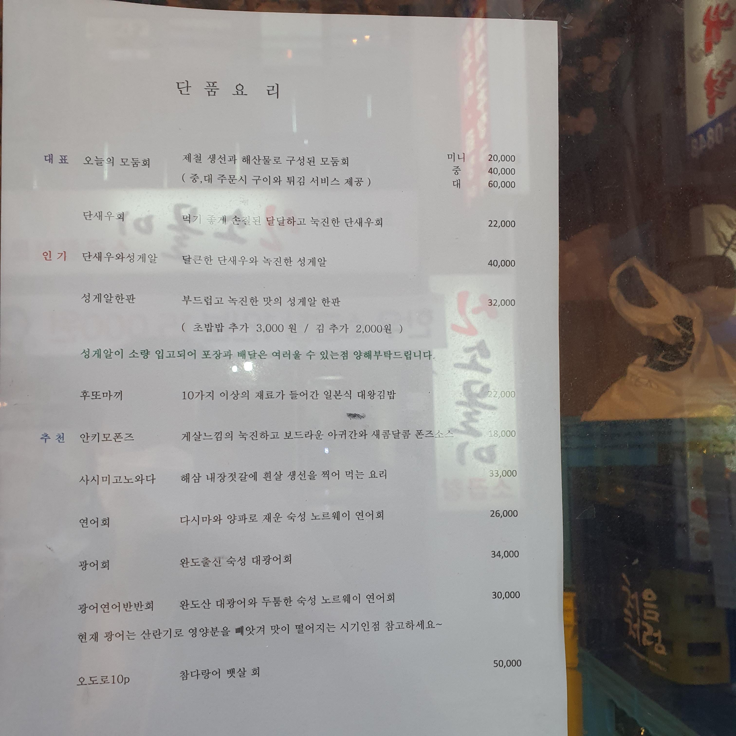 우리가 시킨 메뉴는 [오늘의 모듬회]와 [단새우와 성게알]