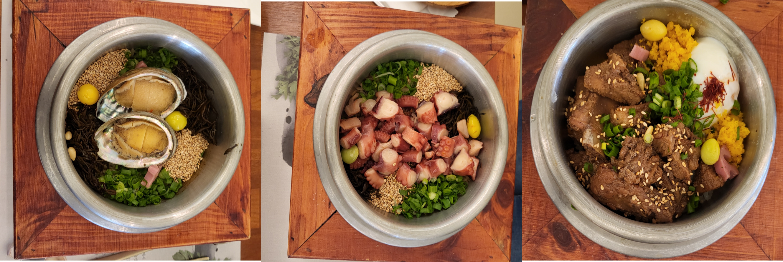 나와 엄마는 전복솥밥, 아빠는 문어를 좋아하셔서 문어솥밥, 해물을 많이 좋아하지 않는 오키는 갈비솥밥을 골랐다.