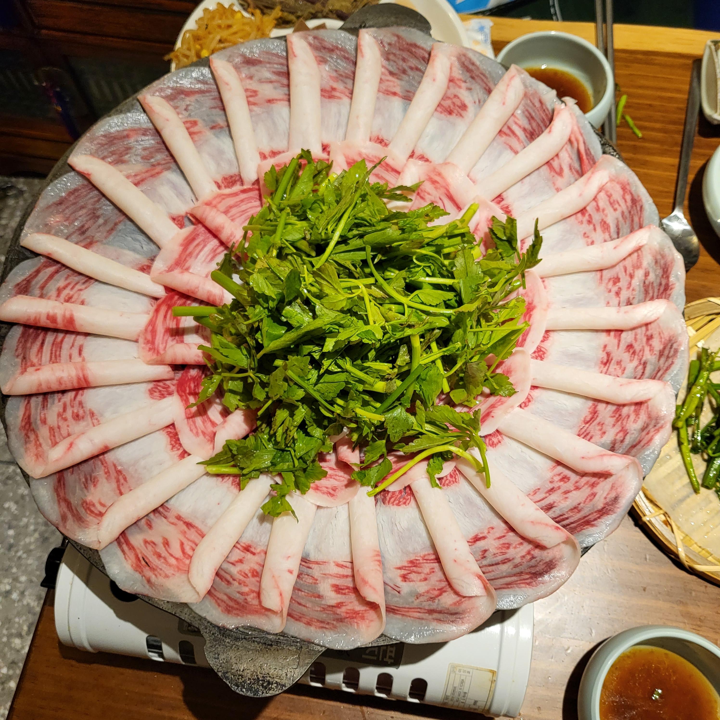 소고기를 먹은후 바로 차돌구절판을 셋업해 주셨다. 정말 이건 인스타에 올릴 수 밖에 없는 비쥬얼이었다.