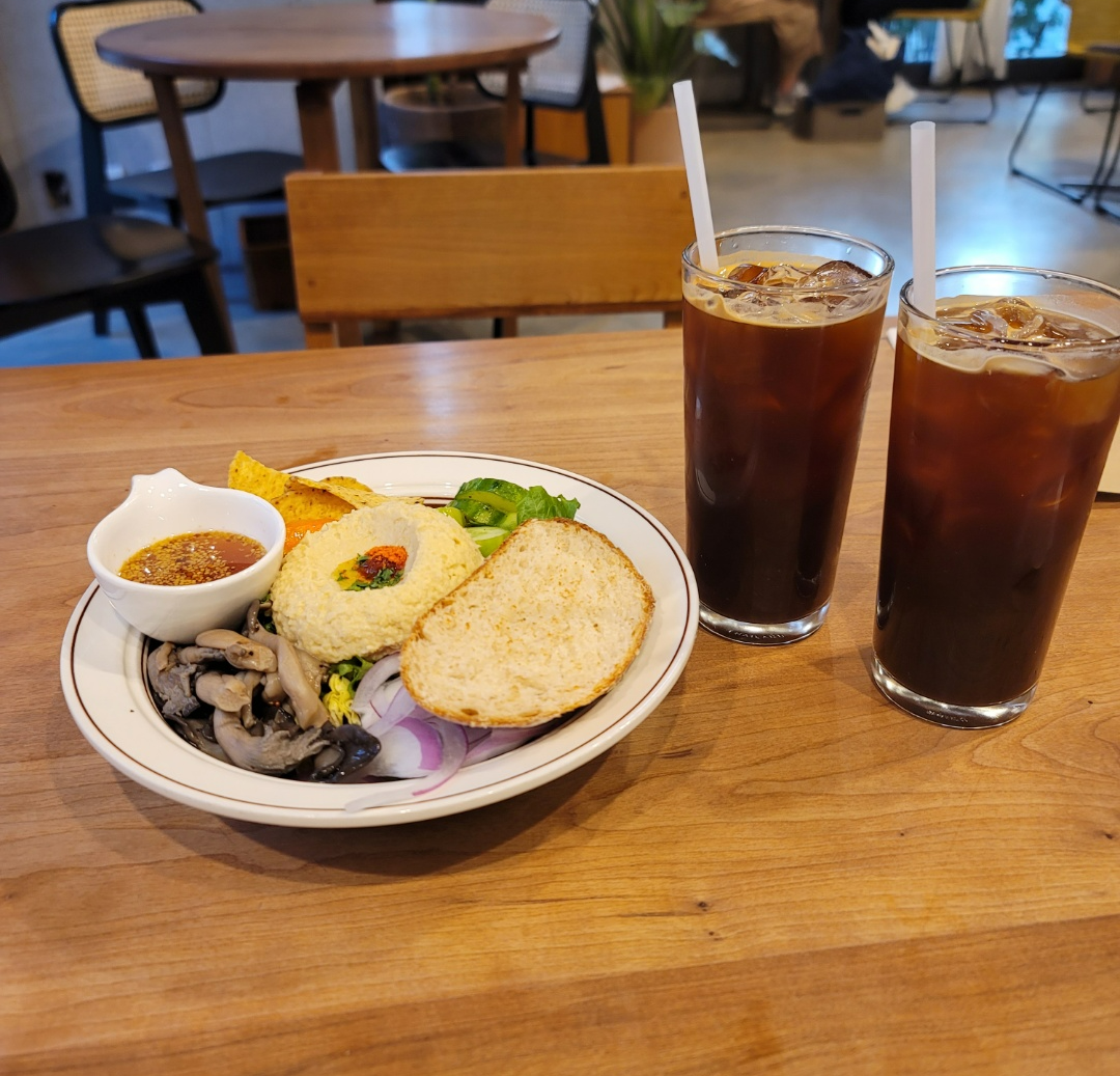 이번 방문에는 지난 번과 같이 생과일 프렌치 토스트를 주문하였고 후무스 샐러드를 호기심에 주문해 보았다. 그리고 아메리카노 각자 주문하였다.