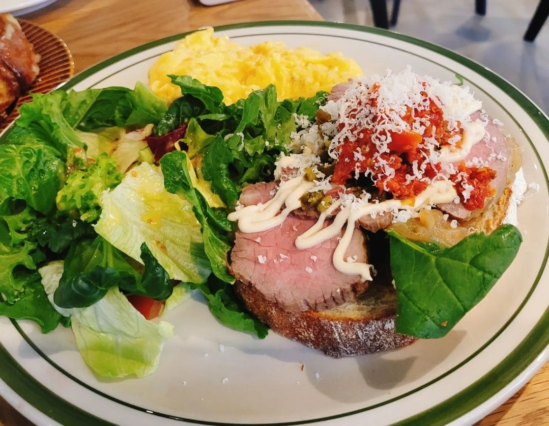 1++ 한우 샌드위치는 샐러드와 함께 곁들어져 있는 오픈 샌드위치였다. 접시위에 샐러드와 샌드위치 오믈렛이 같이 놓여있었다. 샐러드와 함께 단백한 한우 샌드위치를 먹으니 덜 부담스럽게 먹을 수 있었다.