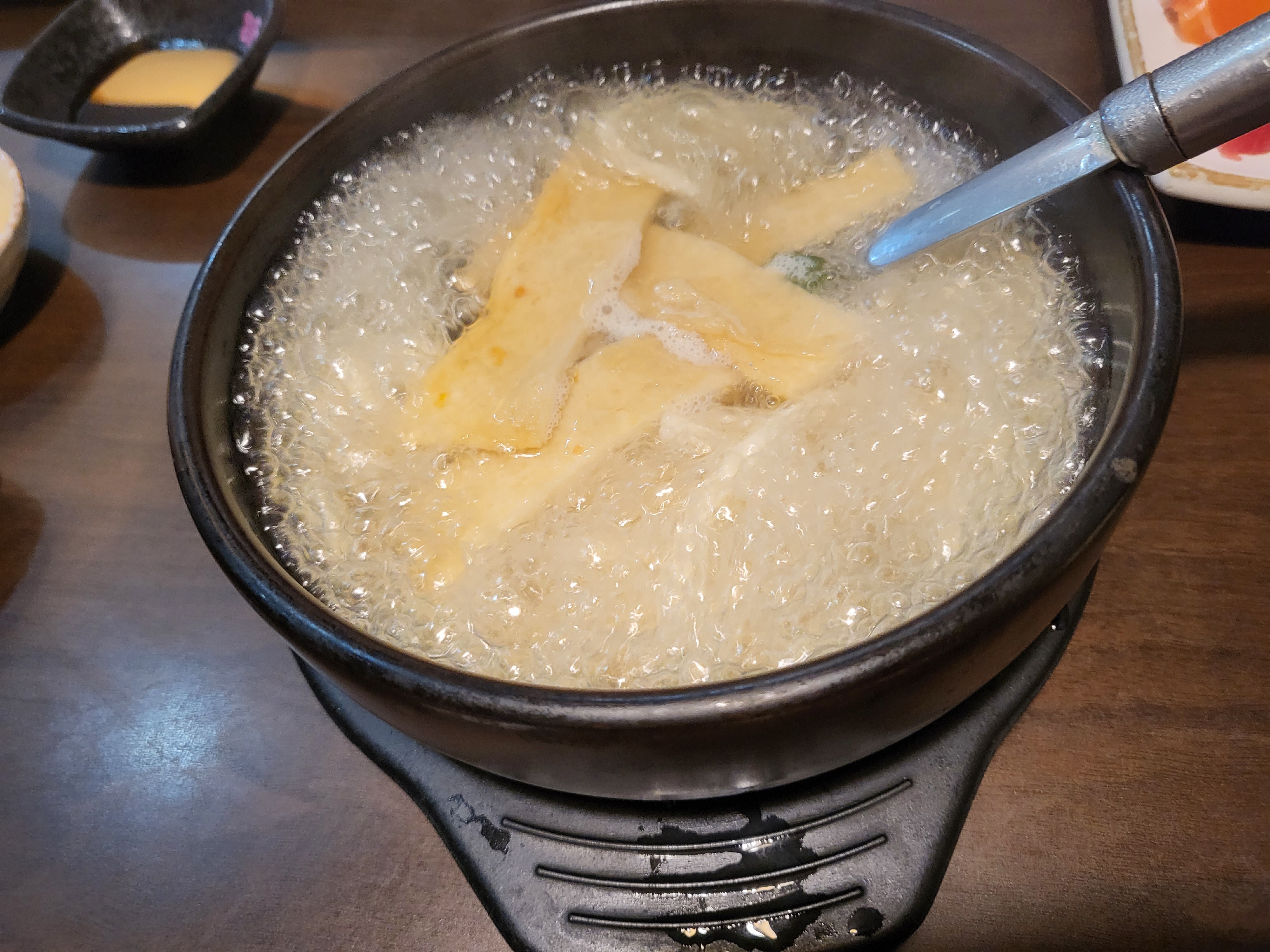 우동국물과 함께 초밥을 먹으니 안주 + 목넘기기 수월하게 초밥과 사케가 넘어가는 듯 싶었다