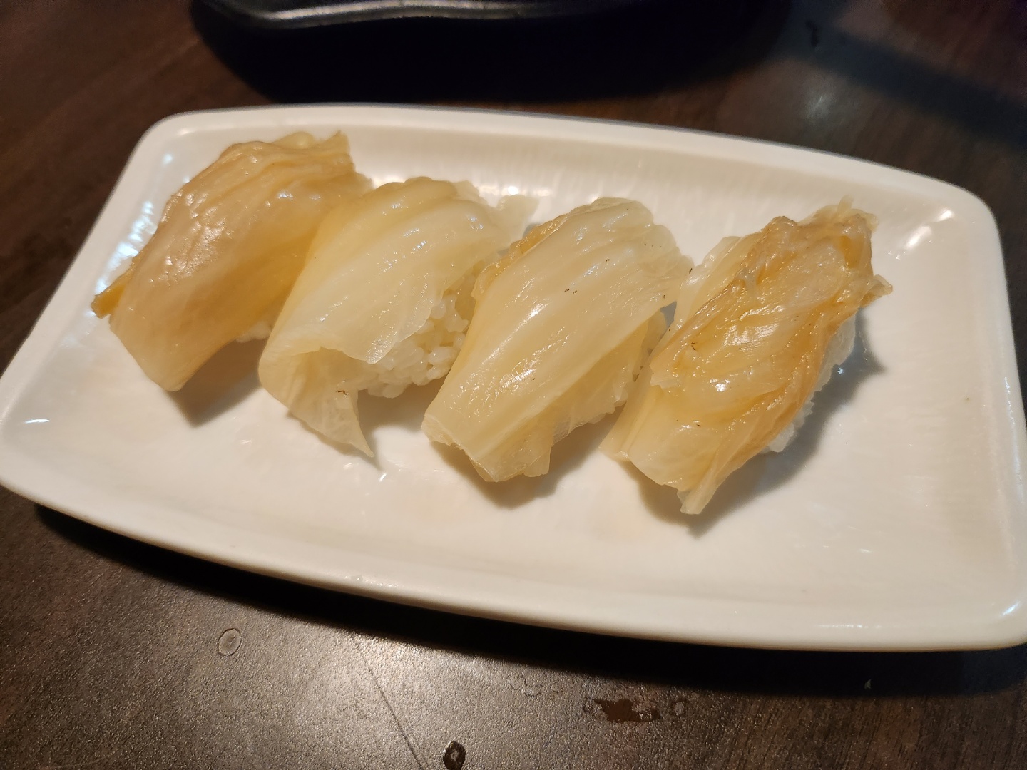 백김치 초밥을 먹으니 입안의 비릿햇던 끝맛이 다 사라지고 개운함이 남는 듯 하였다.