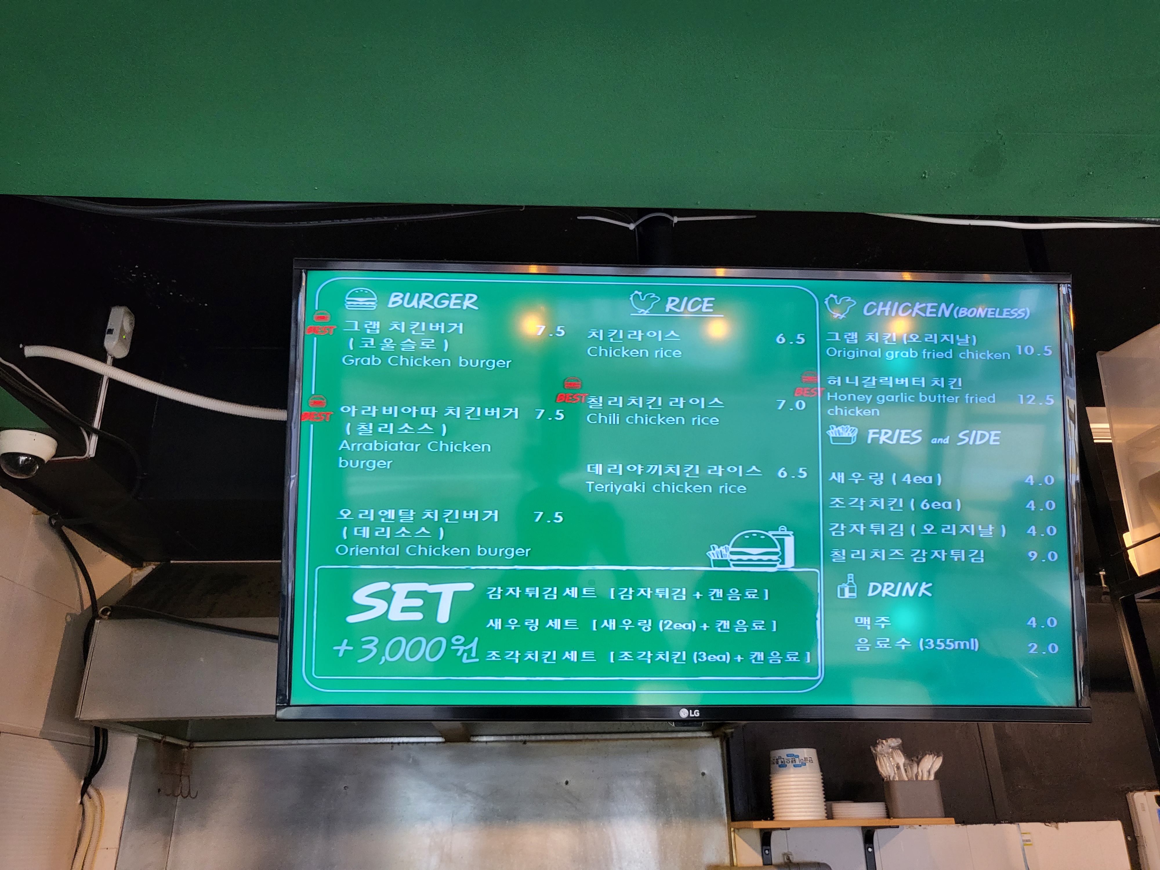 라이스도 먹어보고 싶긴했지만 치킨버거를 먹어보기 위해 왔으므로