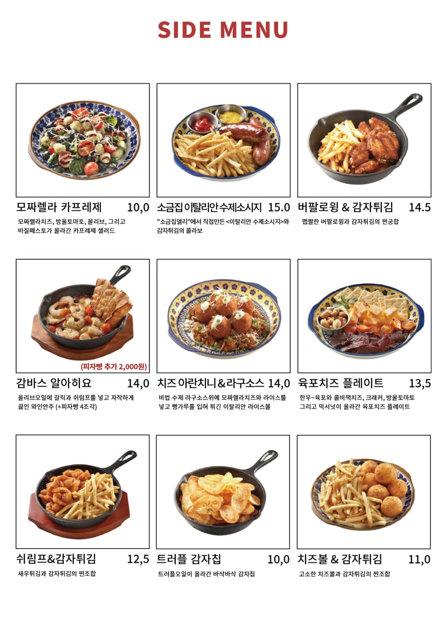 메뉴판을 전체적으로 찍기 어려워서 메뉴판 사진을 가져왔다.