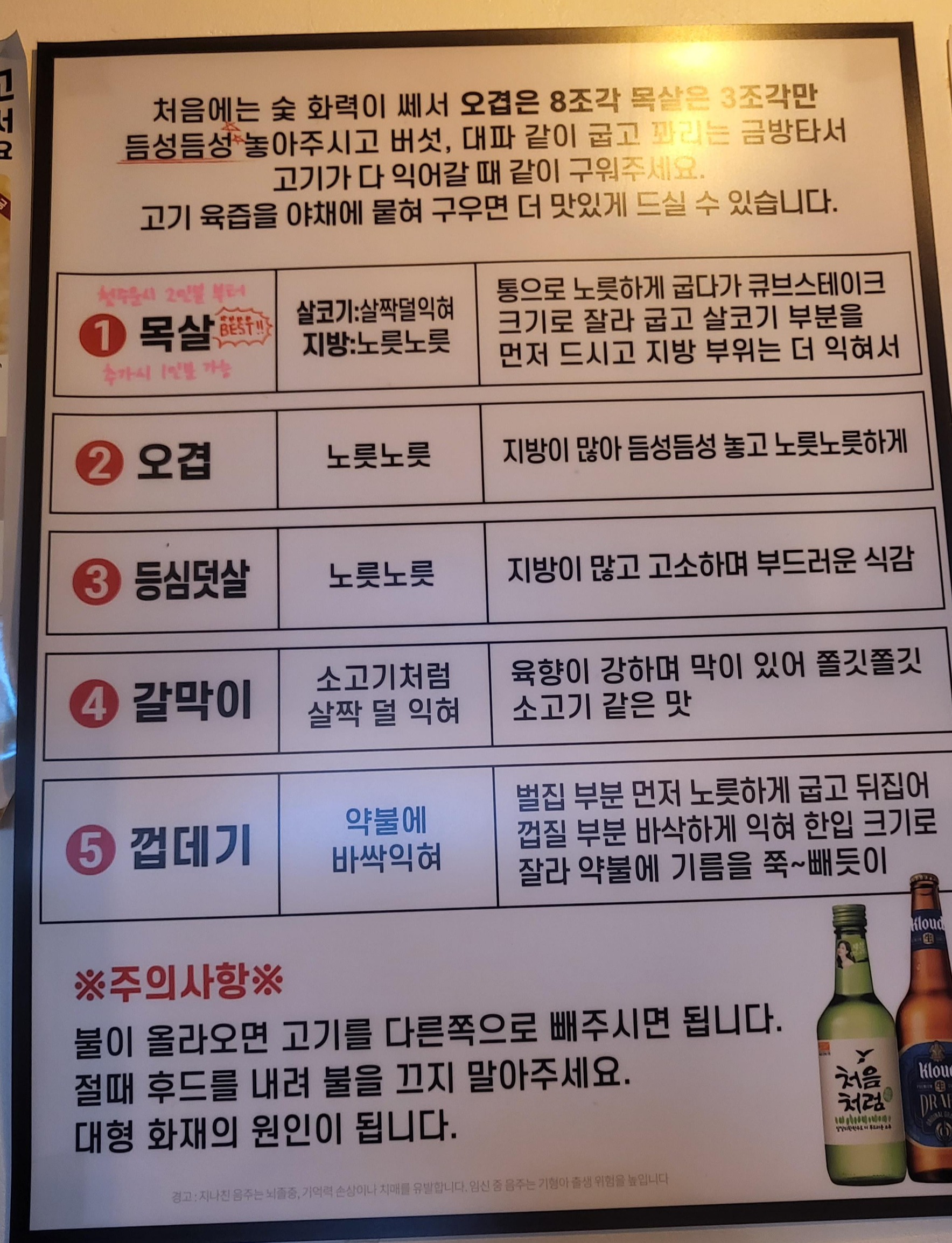 한쪽면에는 각 부위에 대한 먹는 방법이 써있었다.