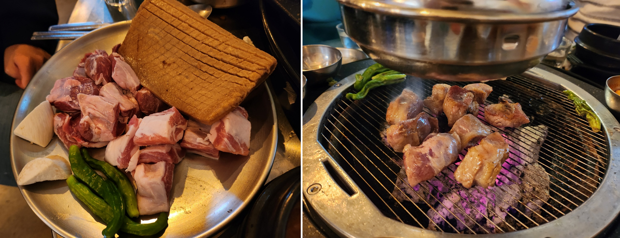 캐나다에서 온 친구가 숯불에서 구워먹는 돼지고기가 먹고싶다고 하여 방문 했던 사당돈.