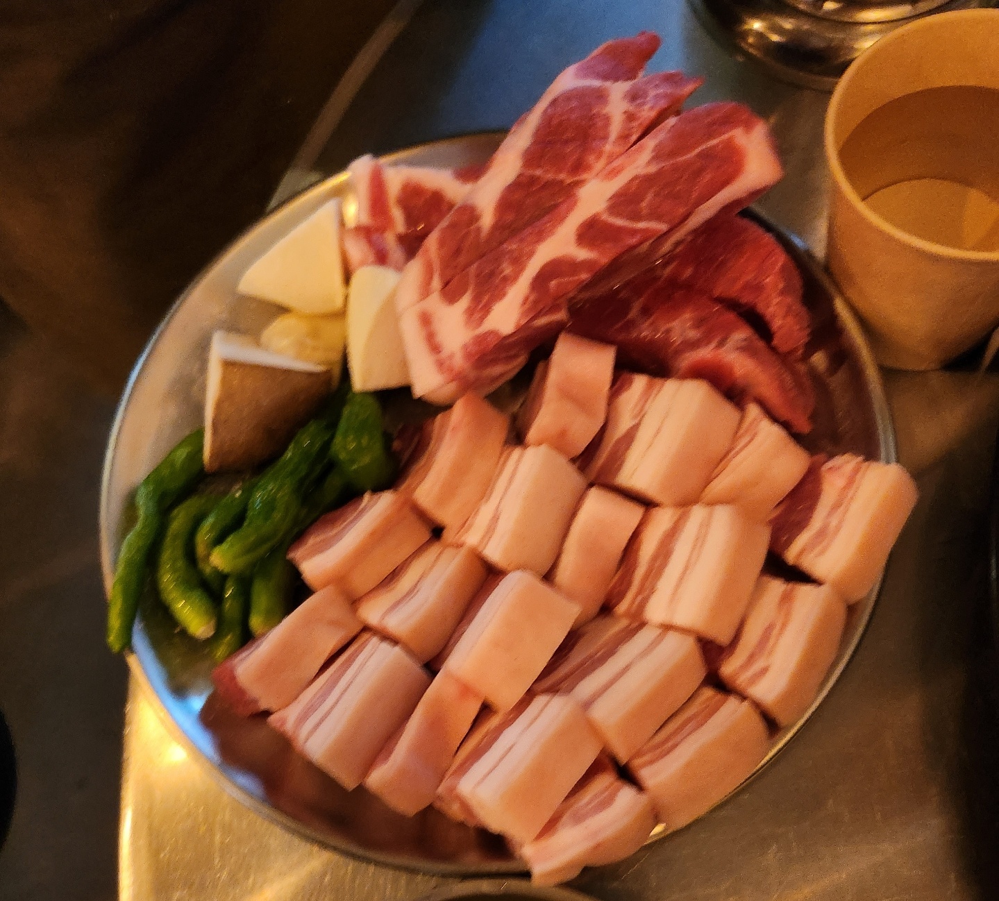 우리는 목살과 오겹살을 먹은 후 다른 부위도 먹자는 이야기를 하며 세팅과 고기를 기다렸다 ㅋㅋㅋ