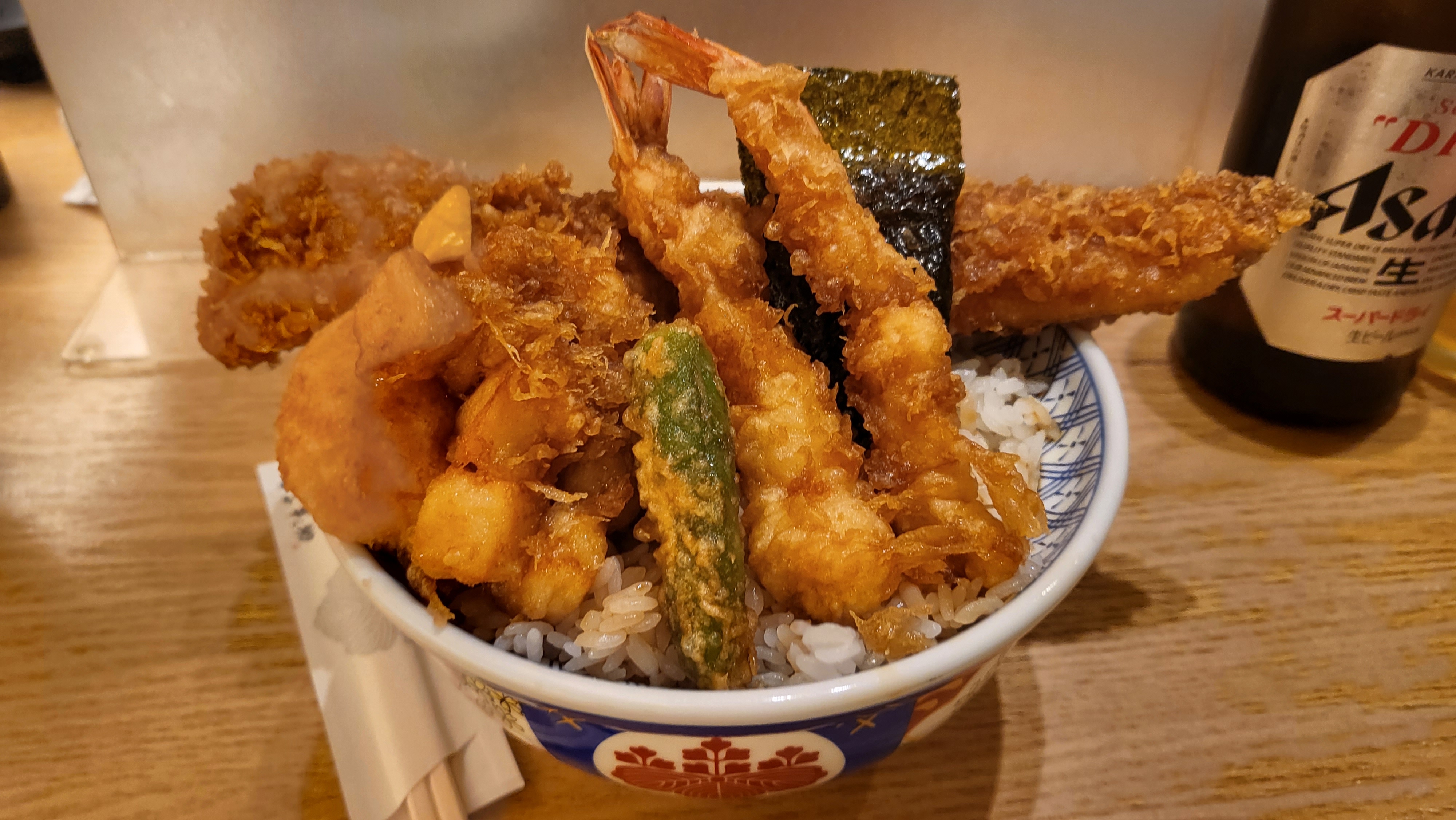 카네코한노스케 텐동은 1200엔이라는 가격 대비 튀김 구성도 괜찮았고 정말 맛있었다.