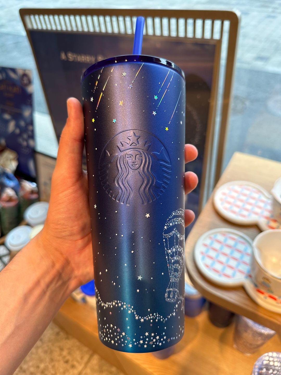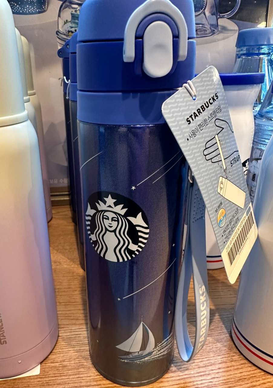 짙은 파란색바탕에 박혀있는 별이 너무 예쁜 텀블러였다.