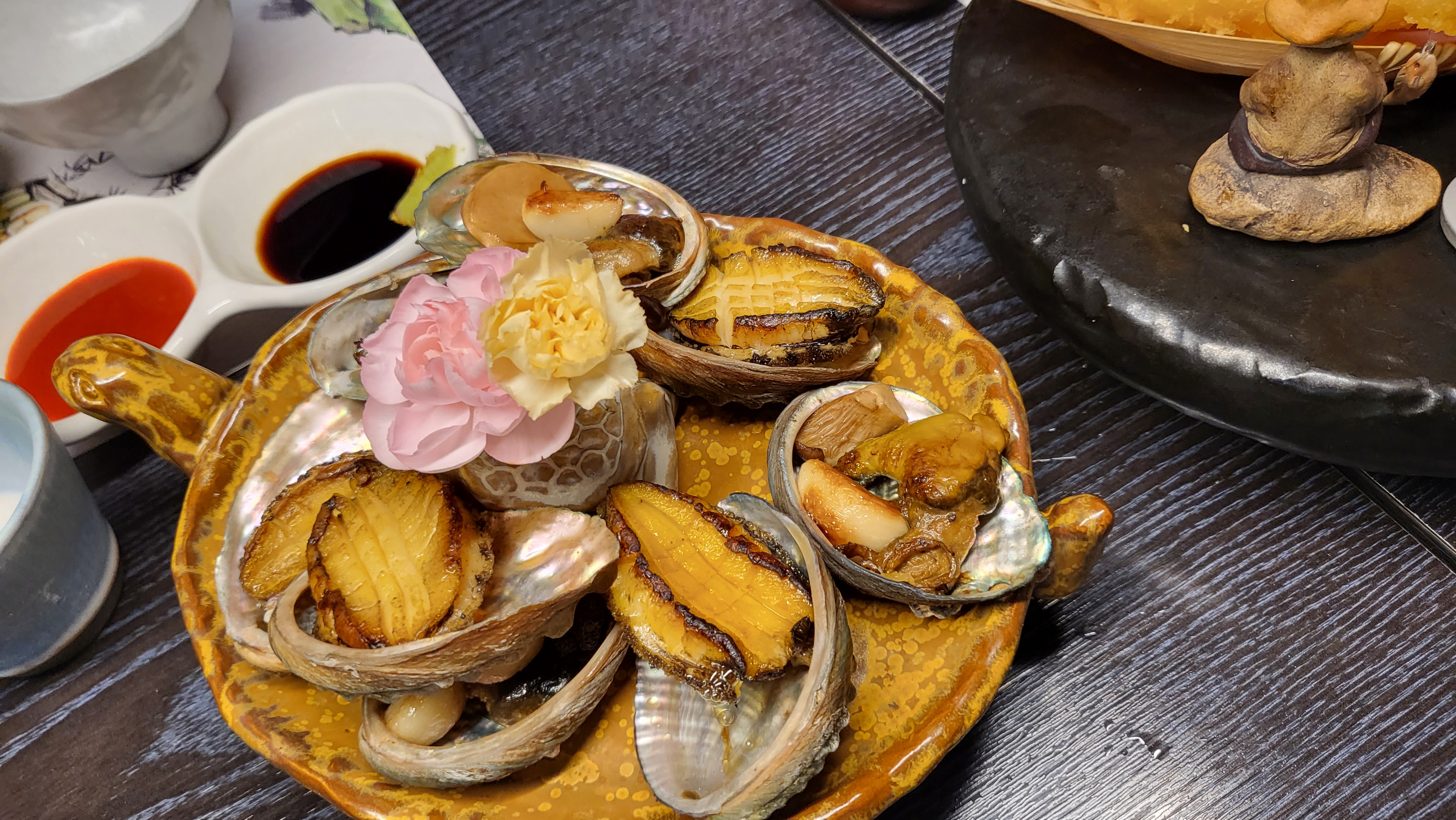 거북이 접시에 전복 버터구이가 올려져서 나왔다.