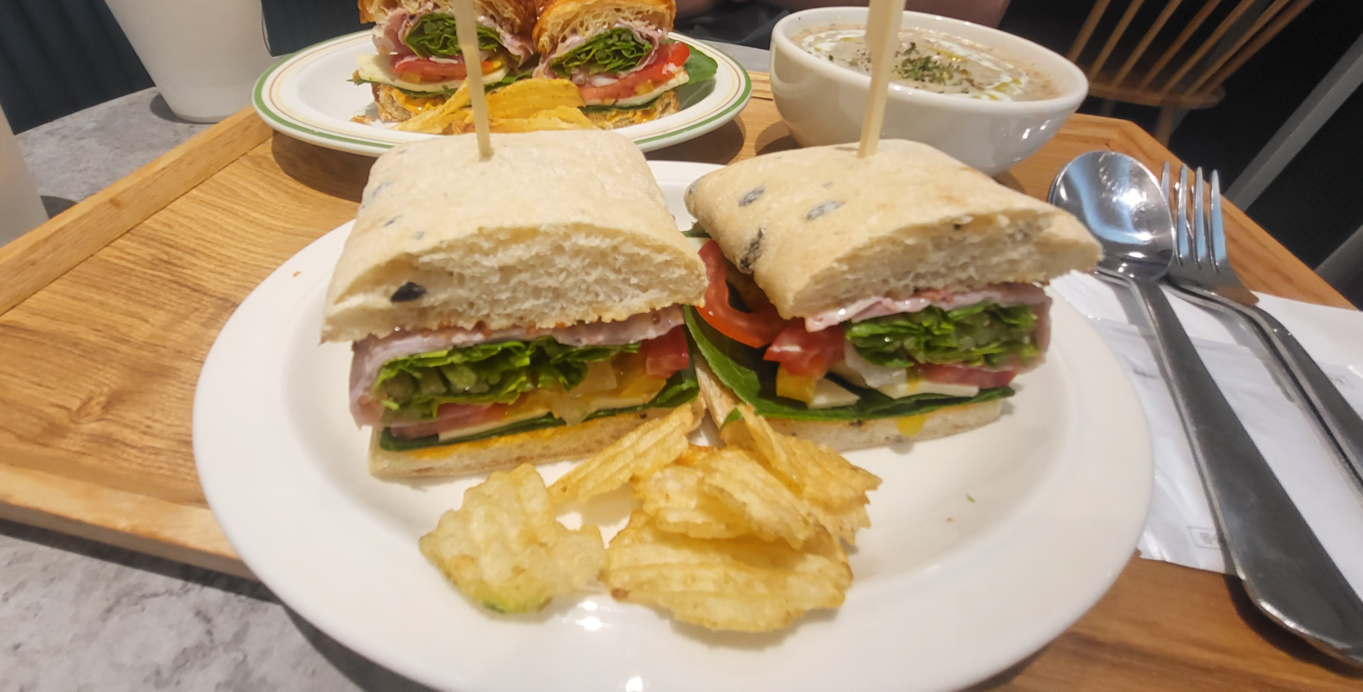 햄, 치즈, 파프리카, 루꼴라, 양파, 상추, 토마토, 올리브 치아바타로 만들어져 있었다.