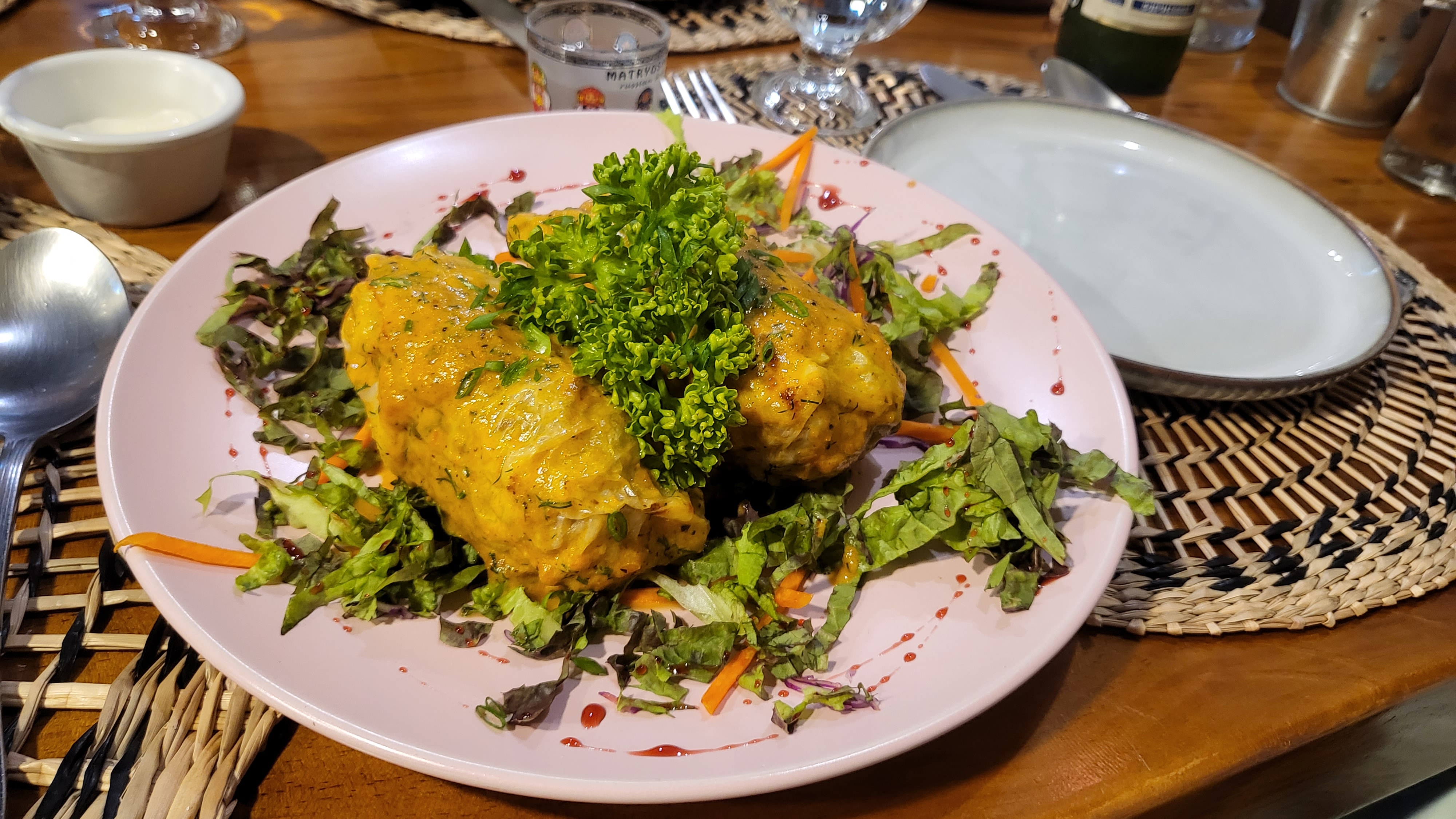 한국인들도 무난하게 먹을 수 있는 고기 양배추 쌈 같은 느낌 !?