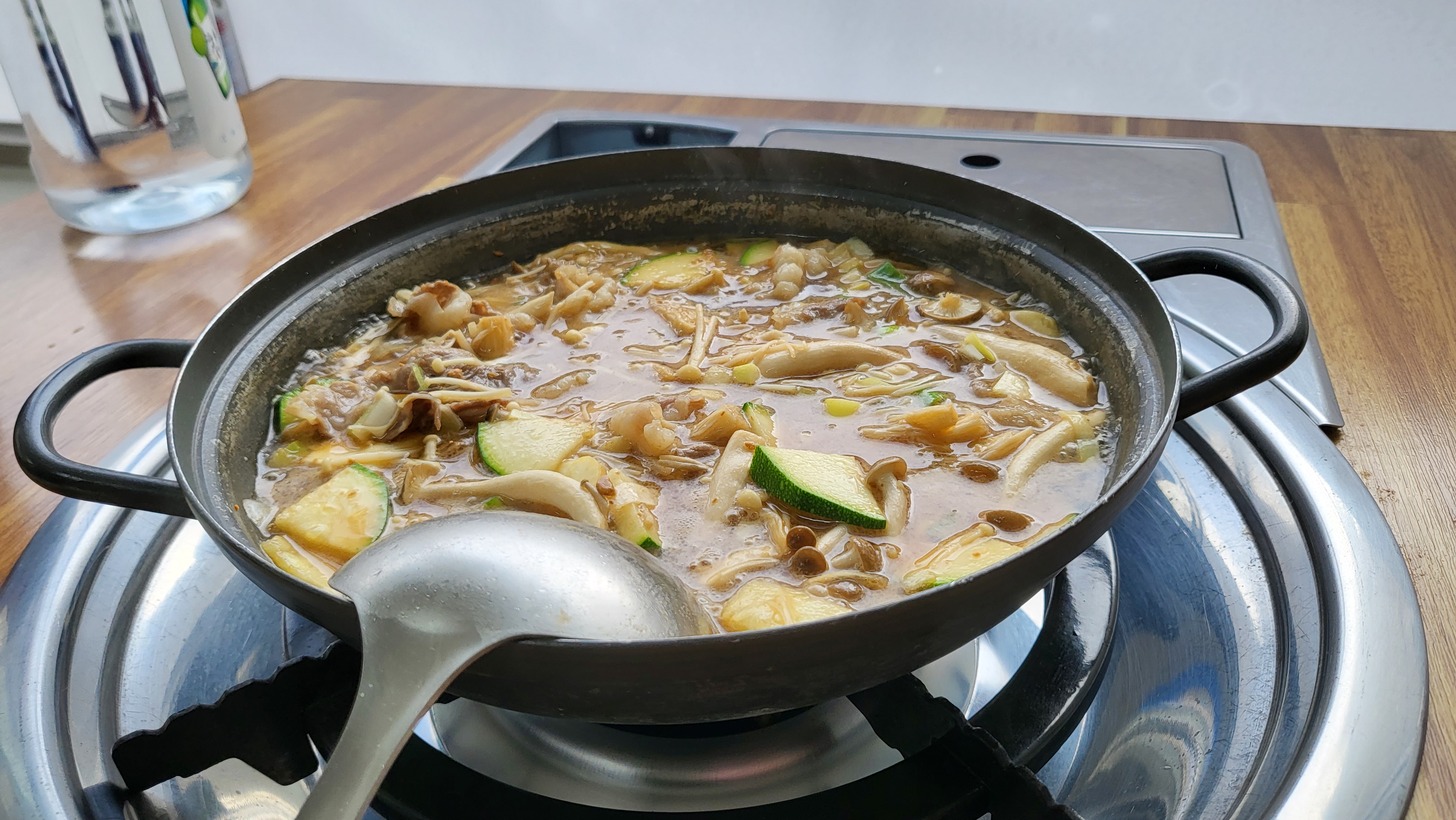 가스렌지 위에서 찌개가 끓을 때까지 기다렸다