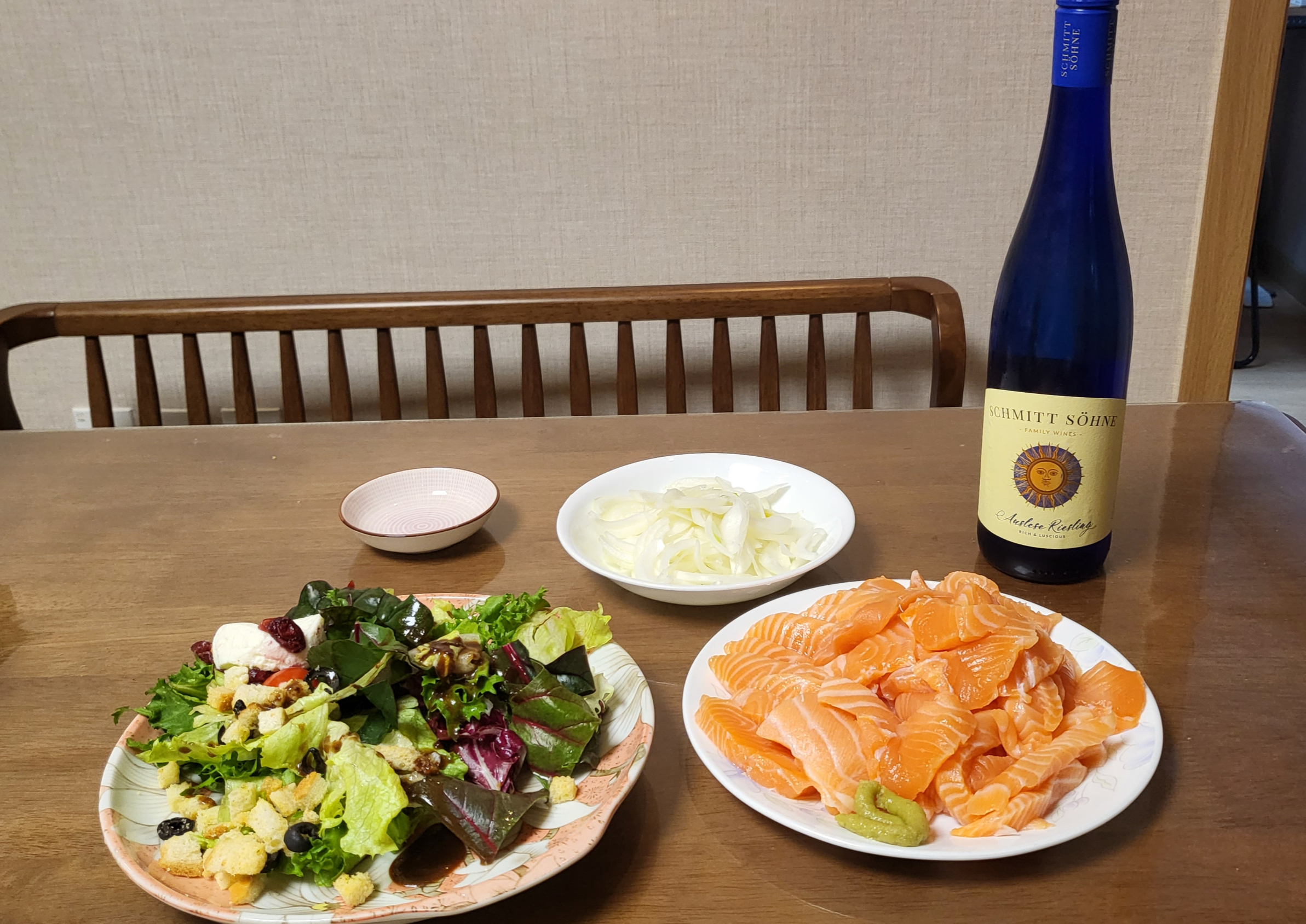 샐러드와는 페어링이 좋았지만 연어회와는 어울리지 않았다.