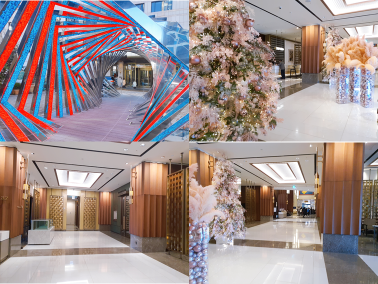 분홍색 트리 장식이 눈에 띄었고, 입구앞에 LED 구조 또한 신선하였다.