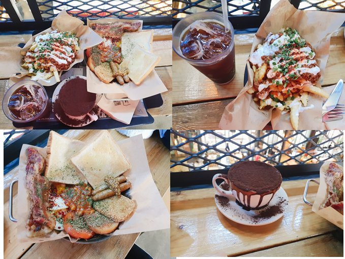 우리가 주문한 음료와 브런치 그리고 칠리포테이토가 나왔다.