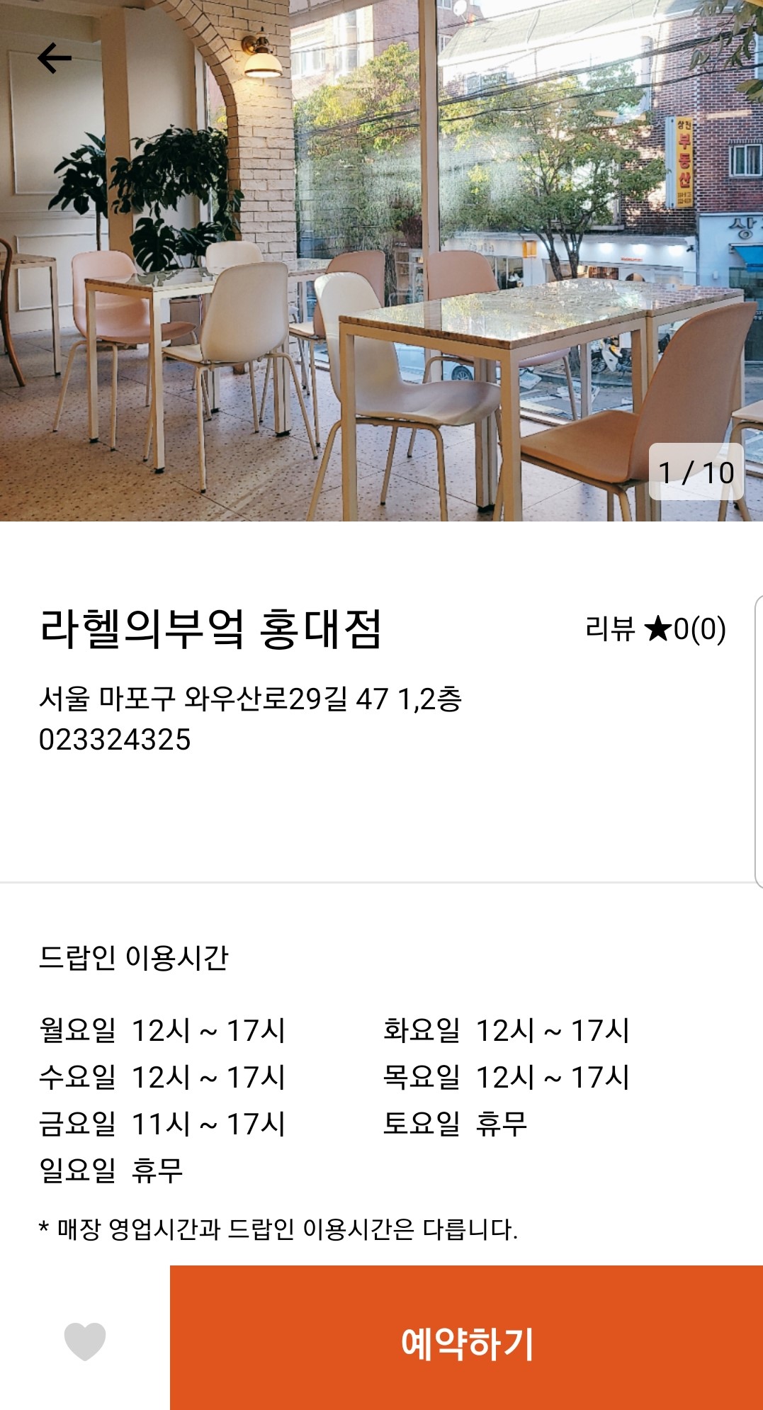 홍대 인근의 매장은 라헬의 부엌을 포함해서 다 예약이 가능했다.