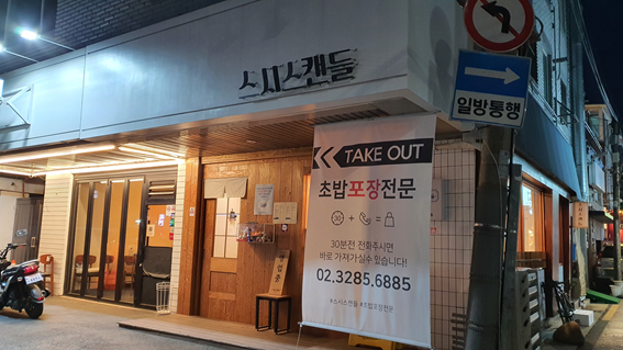 샤로수길에 오랫만에 간 우리는 여러 음식점 중 고민을 하다가 스시스캔들을 가기로 정하였다.