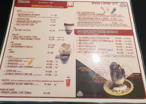 나는 Butterfinger's favorite을 주문하였고 남친님은 Chocolate Covered Pancake을 주문하였다.