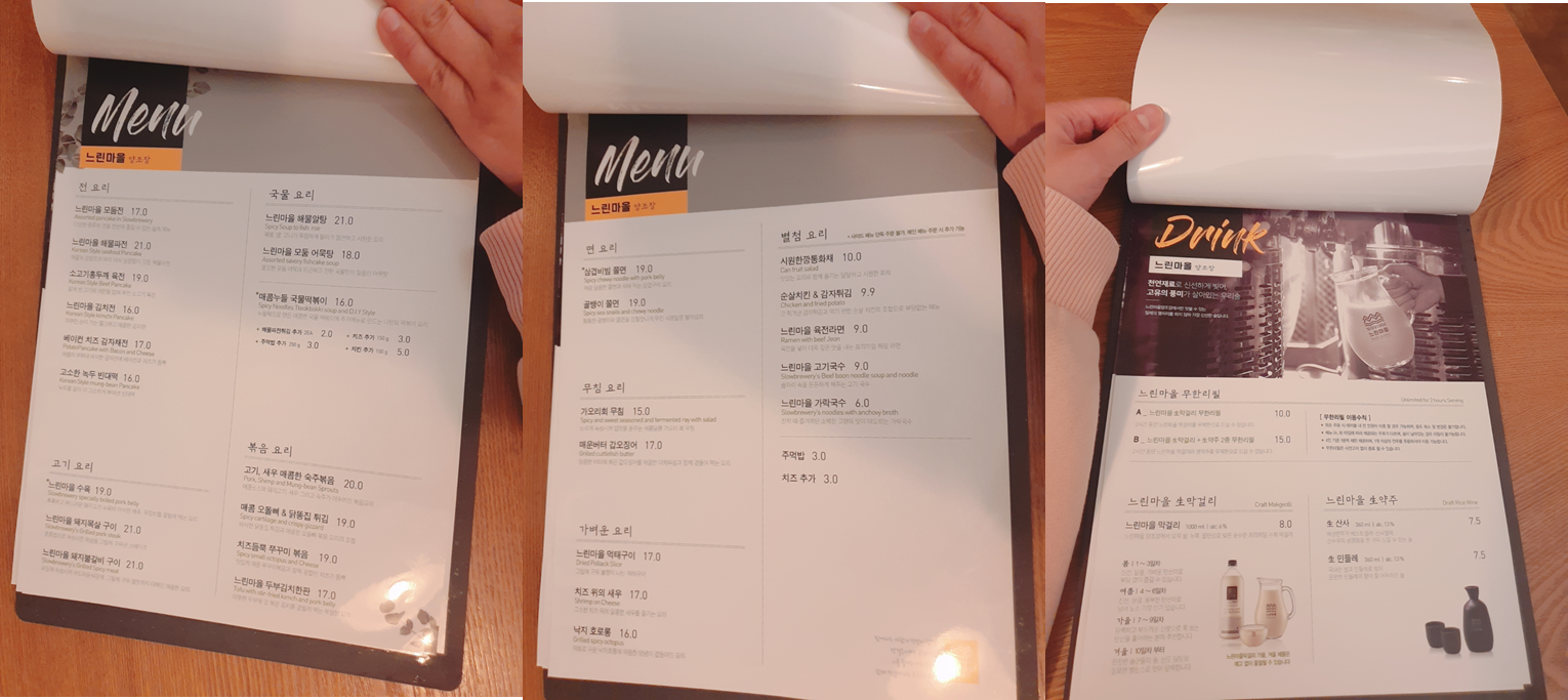 술을 많이 마실 자신이 있다면 느린마을 무한리필을 추천 한다.